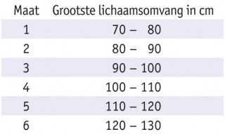 Voor de juiste maat wordt geacht de omvang van de heup op te meten. (zie illustratie en maattabel)